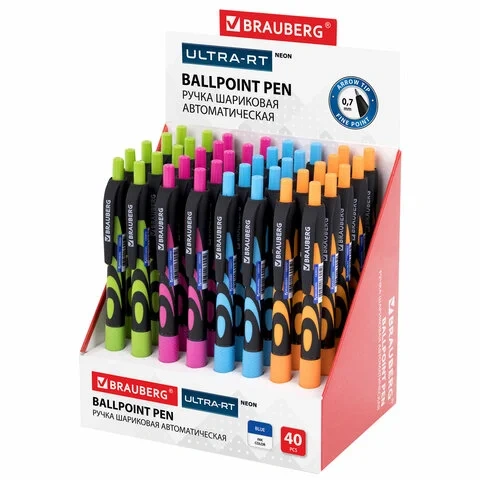 Шариковая ручка автоматическая Brauberg Ultra-Rt Neon синяя, 0.35мм, корпус ассорти