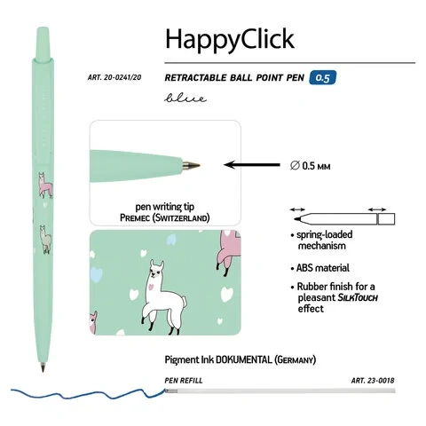 Шариковая ручка автоматическая Bruno Visconti HappyClick синяя, 0.3мм, корпус с Ламами