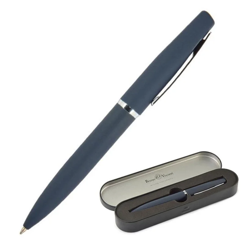 Ручка шариковая автоматическая Bruno Visconti Portofino. Простой и надежный пишущий механизм, выполнен из высококачественных материалов. Металлический корпус синего цвета. Вид механизма: поворотный. Цвет чернил: синий. Толщина линии письма — 1 мм. Металличский футляр, размер (ДxШxВ): 178×45×20 мм. Присутствует возможность нанесения логотипа. Производство: Китай.