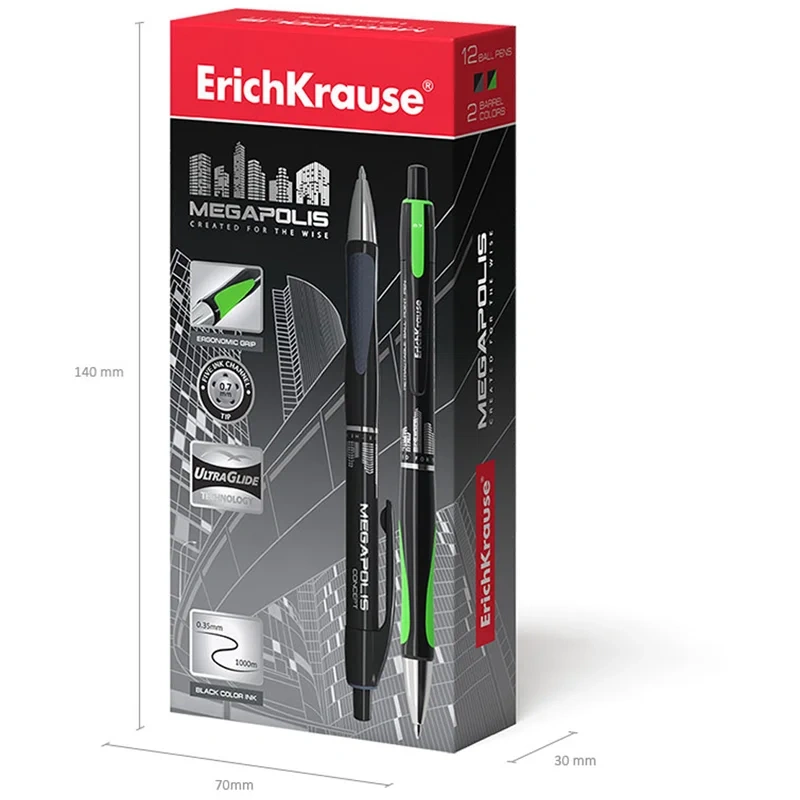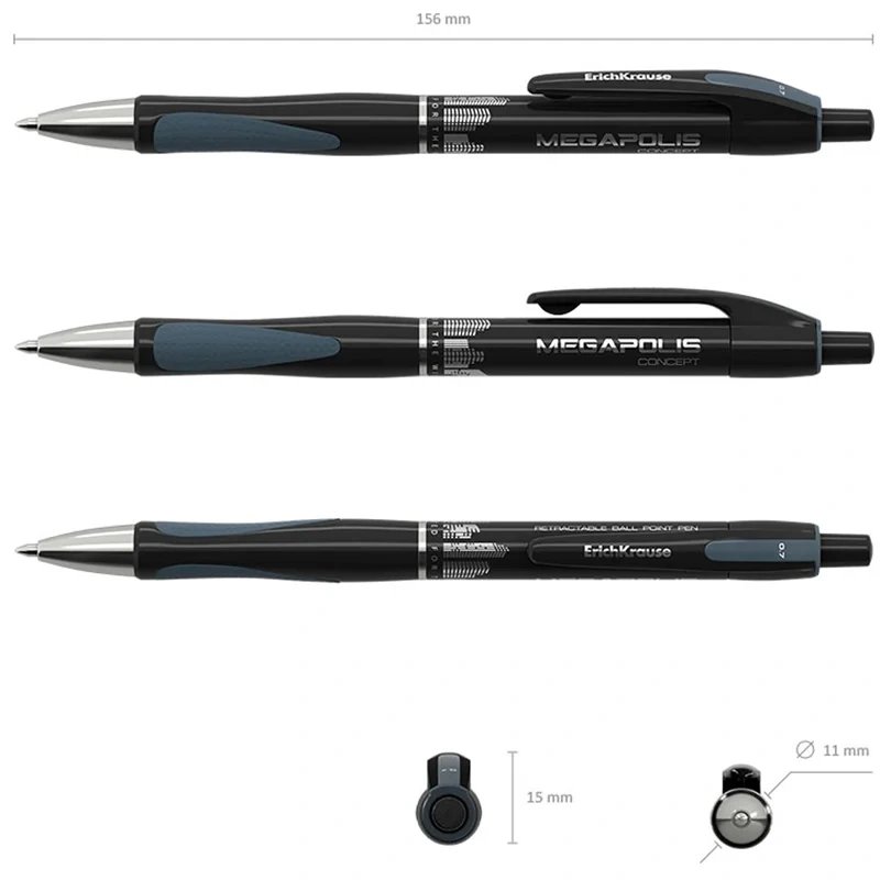 Ручка шариковая автоматическая Erich Krause Megapolis Concept черная, 0.7мм, 32