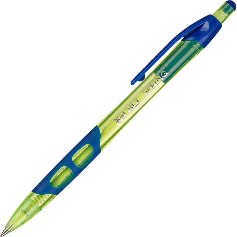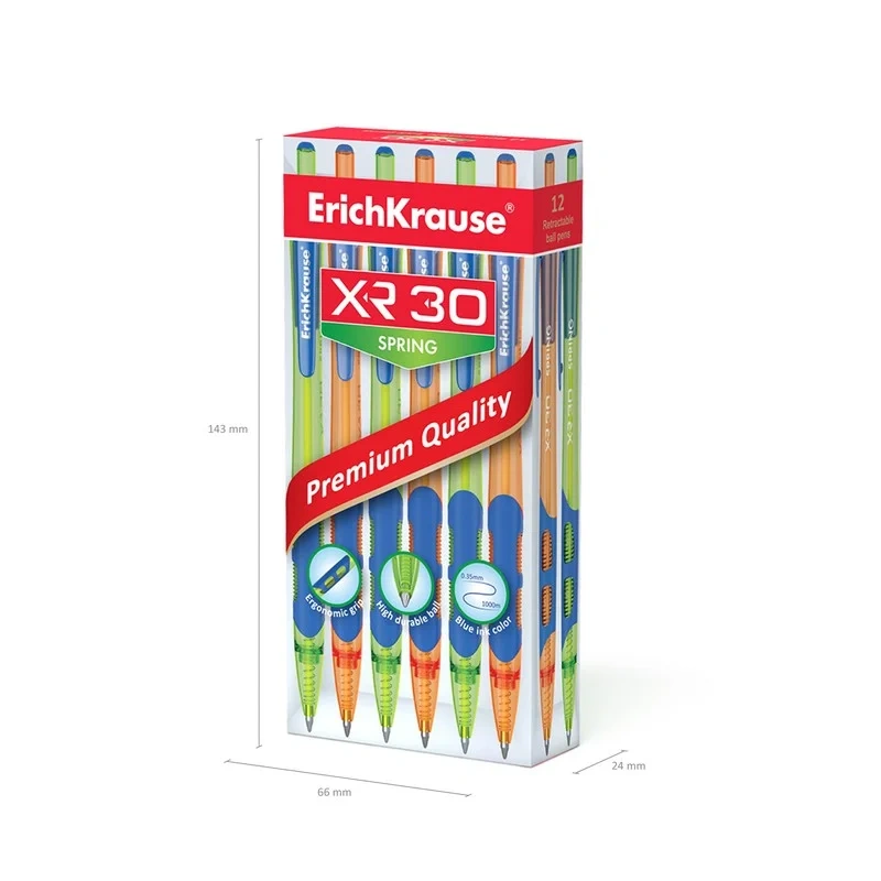 Автоматическая шариковая ручка Matic&Grip со стандартным типом пишущего узла и заменяемым стержнем. Ручка имеет круглый полупрозрачный корпус ярких неоновых цветов с эргономичной комбинированной грип-зоной из резины и профилированного пластика. 5-канальный пишущий узел с диаметром шарика 0.7 мм в сочетании с быстросохнущими чернилами обеспечивает мягкое и быстрое письмо. Длина непрерывной линии составляет 1000 м при толщине 0.35 мм, что является высоким показателем в своей категории. Модель XR-30 Spring стала одним из бестселлеров в ассортименте автоматических ручек ErichKrause.