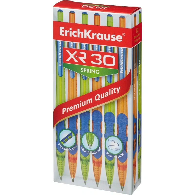 Шариковая ручка автоматическая Erich Krause XR-30 Spring синяя, 0.7мм, корпус ассорти