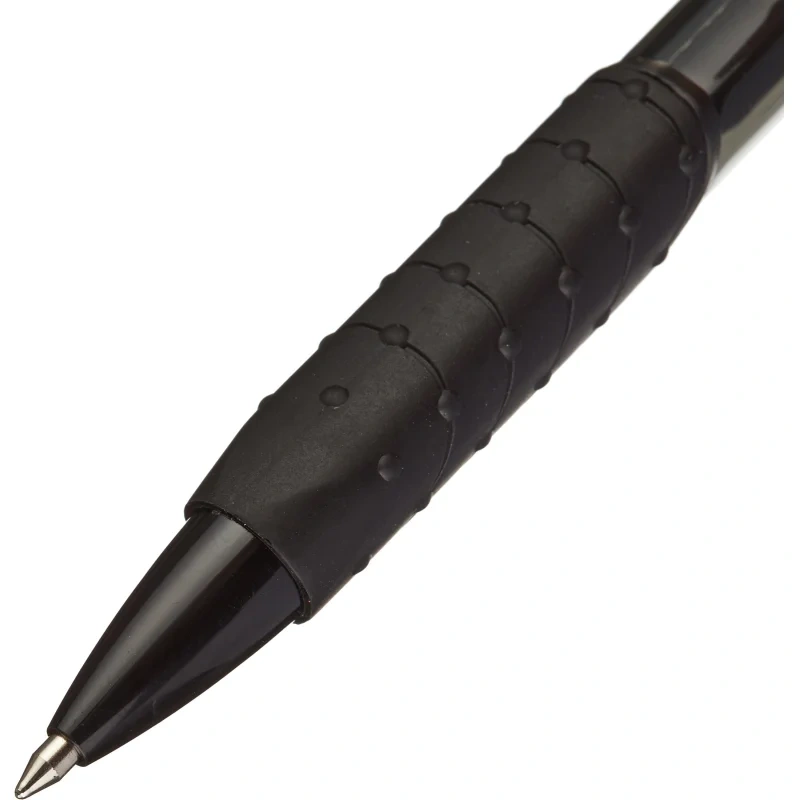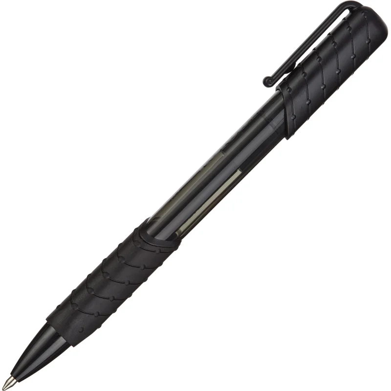 Шариковая ручка компании Kores черного цвета. Эргономичная конусовидная форма и резиновая манжета комфортны для рук. Шарик в трубочке стержня диаметром 0,7 мм оставляет на бумаге линию шириной 0,5 мм. Корпус комбинированный — синий и прозрачный пластик. Объема стержня хватает для написания 4,5 км знаков. Сменные стержни для ручки вы сможете найти во вкладке «Расходные материалы».