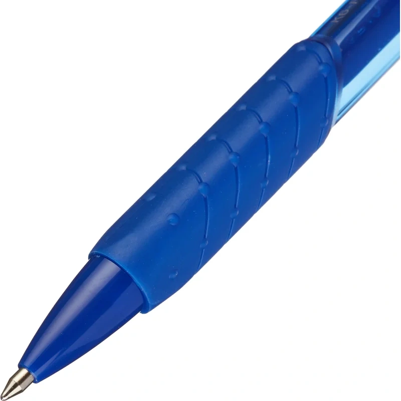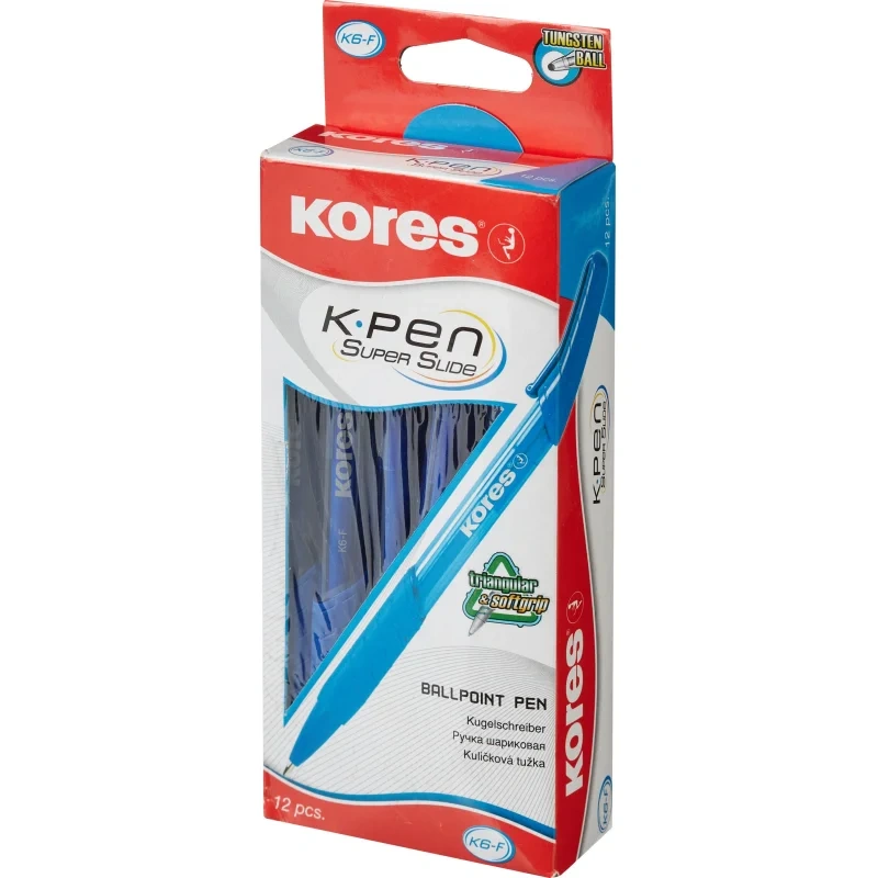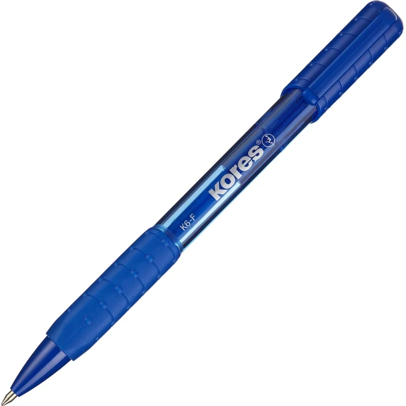 Шариковая ручка компании Kores синего цвета. Трехгранный корпус и резиновая манжетка комфортны для рук. Шарик в трубочке стержня диаметром 0,7 мм оставляет на бумаге линию шириной 0,5 мм. Корпус комбинированный — синий и прозрачный пластик. Объема стержня хватает для написания 4,5 км знаков. Сменные стержни для ручки вы сможете найти во вкладке «Расходные материалы».