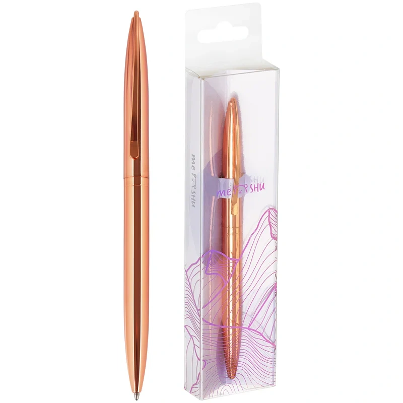 Шариковая ручка MESHU – это привлекательный аксессуар для ярких, смелых и успешных. Лаконичный корпус ручки из металла под розовое золото дополнен металлическим клипом, с помощью которого ручку можно закрепить на одежде или ежедневнике.