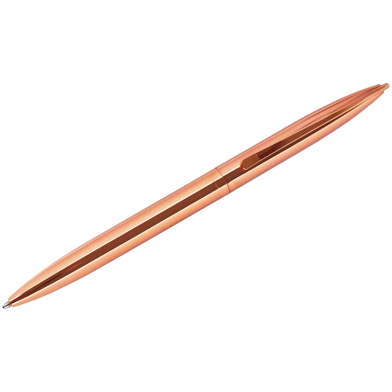 Ручка Rose gold обязательно принесет удачу в заключении важных контрактов и торжественных соглашений. Изящные и плавные линии, декоративные детали станут неотъемлемой частью праздничной и радостной атмосферы. Благодаря упаковке с голографическими элементами ручка может стать приятным подарком. Диаметр пишущего узла составляет 1 мм, а значит ручка подойдёт для мягкого и быстрого письма. Толщина линии составляет 0,8 мм. Длина сменного стержня 105 мм. Ручка оснащена поворотным механизмом, что говорит о надёжности и безопасности изделия – стержень не повредится в сумке и не оставит следов на посторонних предметах. Благодаря чернилам синего цвета ручку можно использовать в работе или учёбе на постоянной основе.