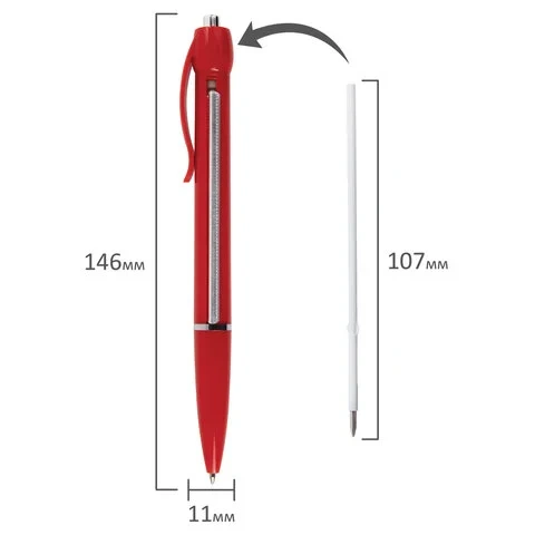 Ручка имеет непрозрачный пластиковый корпус ассорти. Пишущий узел 0,7 мм создает ровную линию 0,35 мм. Цвет чернил - синий. Сменный стержень.