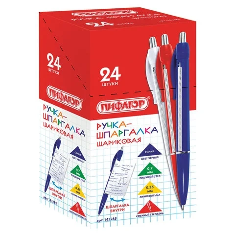 Предстоит контрольная или экзамен? Тогда возьмите с собой автоматическую шариковую ручку ПИФАГОР 'Шпаргалка'! Покупайте товары для учебы в нашем интернет-магазине!