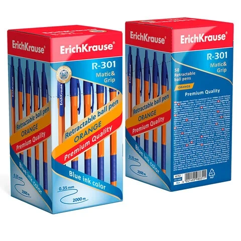 Шариковая ручка автоматическая Erich Krause R-301 Orange синяя, 0.5мм, оранжевый корпус