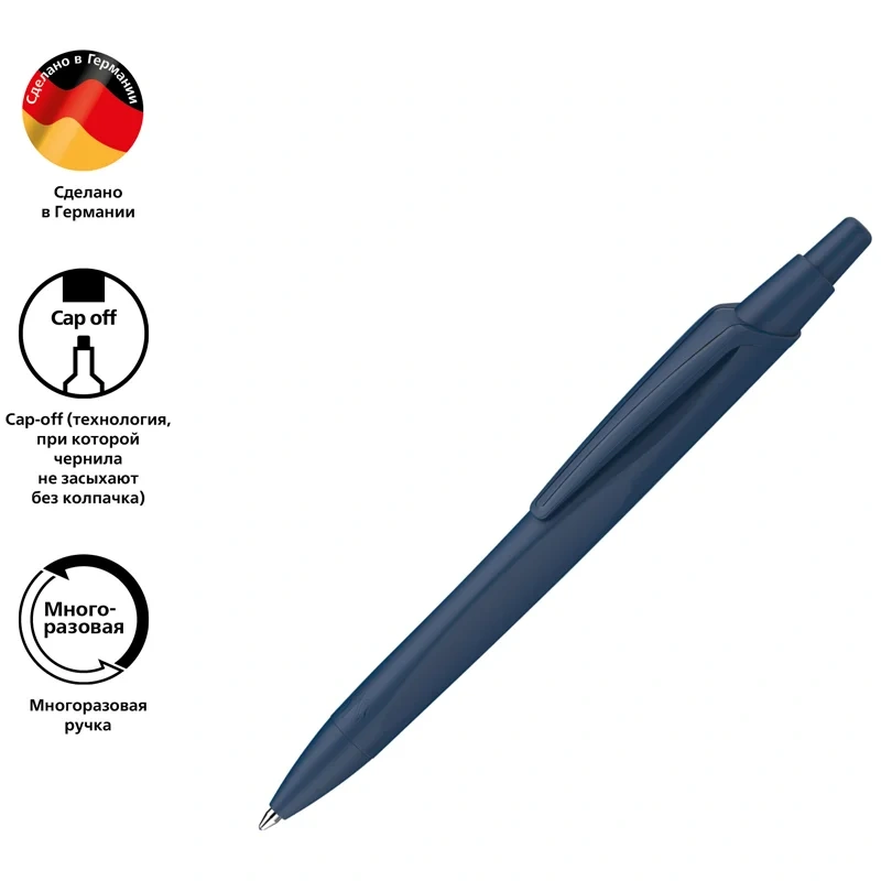 Автоматическая шариковая ручка Reco отмечена экологическим знаком Blue Angel. Быстросохнущие, свето- и водоустойчивые чернила соответствуют международному стандарту качества ISO 12757-2 и отлично подходят для заполнения и подписи документов. Длина непрерывной линии - до 4 000 метров.