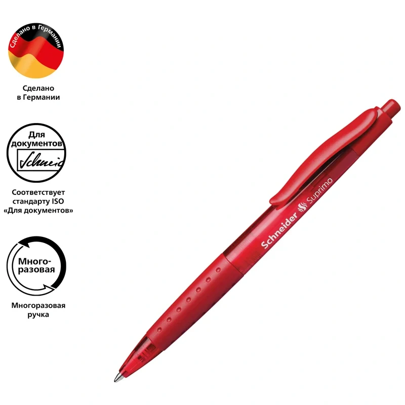 Шариковая ручка автоматическая Schneider Suprimo красная, 0.7мм, красный корпус