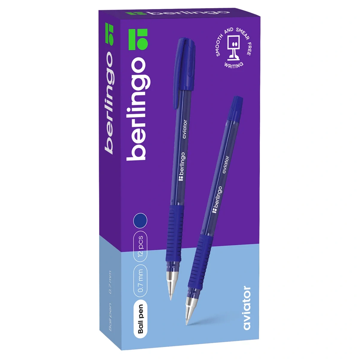 Шариковая ручка Berlingo Aviator — воплощение функционала и качества, один из флагманов ассортимента бренда. Модель выполнена в массивном четырёхгранном корпусе в цвет чернил. Зона захвата оснащена мягким резиновым грипом для предотвращения скольжения во время использования. Крупная текстура грипа и утолщение-упор для пальцев в нижней его части обеспечивают максимальный комфорт. Стержень ручки заправлен светло-синими немажущими чернилами, обеспечивающими аккуратную линию и чистоту письма. Цельнометаллический наконечник способен выдержать самые серьезные нагрузки. Современный технологичный дизайн, оригинальный колпачок с логотипом бренда придают ручке солидный и запоминающийся внешний вид. Ручка поставляется с пишущим узлом 0,7 мм (линия письма 0,5 мм), что делает её универсальной и подходящей для любого стиля письма. Уникальная запатентованная технология Smart Ink обеспечивает лёгкое и приятное письмо за счёт использования чернил пониженной вязкости, специальной конструкции пишущего узла, инновационных материалов шарика и пишущего узла. Компоненты, используемые для изготовления шарика пишущего узла (карбид вольфрама), обеспечивают долговечность и стабильность качества письма.