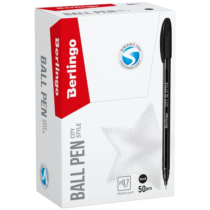 Ручка шариковая Berlingo City Style черная, 0.7мм, черный корпус, одноразовая