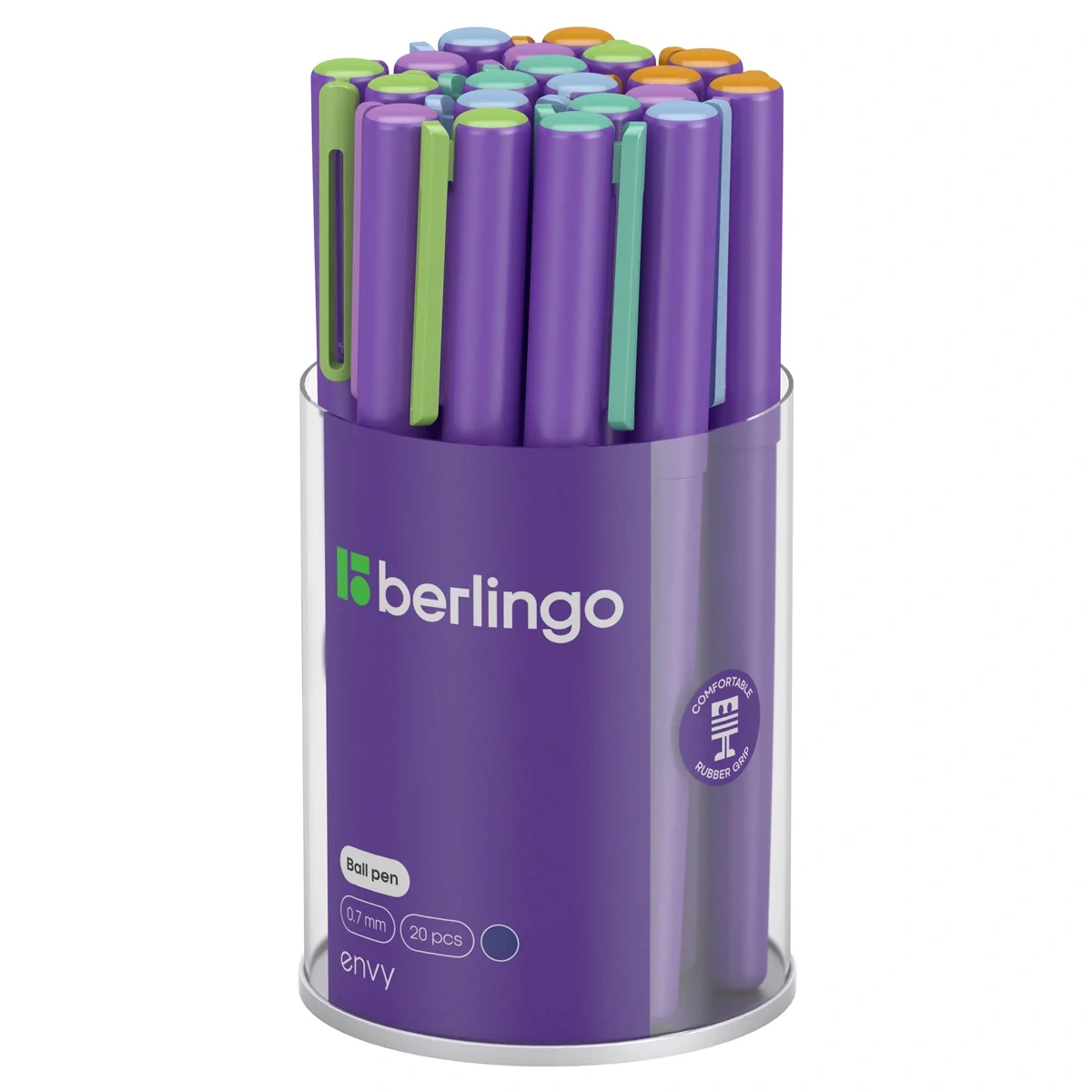 Ручка шариковая Berlingo 'Envy' синяя, 0,7мм, игольчатый стержень, грип, корпус ассорти