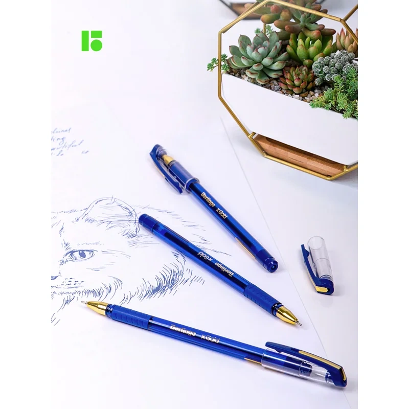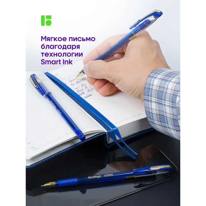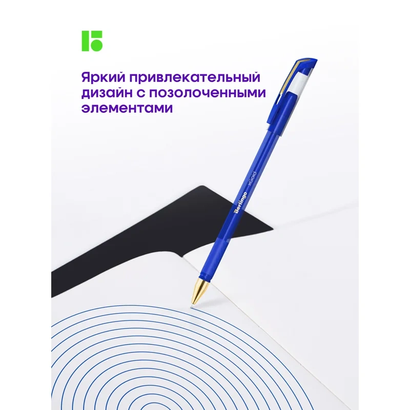 Шариковая ручка шариковая Berlingo xGold – эта флагманская модель ассортимента Berlingo. С 2018 года она стала официальной ручкой «Тотального диктанта» - ежегодной образовательной акции популяризации грамотности. Кроме того, xGold является обладателем премии «Выбор канцелярского рынка 2018». Ручка оснащена вентилируемым колпачком, который обеспечивает безопасность при использовании детьми. Удобный пластиковый клип позволяет закрепить ручку, например, на ежедневнике или тетради. Мягкий резиновый грип препятствует скольжению пальцев и обеспечивает комфортное письмо. Диаметр пишущего узла составляет 0,7 мм, благодаря чему ручка прекрасно подходит для любого стиля письма.Уникальная запатентованная технология Smart Ink обеспечивает лёгкое и приятное письмо за счёт использования чернил пониженной вязкости, специальной конструкции пишущего узла и инновационных материалов шарика и пишущего узла. Такими чернилами можно писать без дополнительных усилий даже при лёгком касании бумаги. Инновационные материалы, используемые для изготовления шарика пишущего узла (карбид вольфрама), обеспечивают долговечность и стабильность качества письма. - Цвет чернил: синий;- Толщина линии письма: 0,5 мм;- Длина письма: 850 м;- Цвет корпуса: синий;- Количество штук в упаковке: 12;- Тип упаковки: картонная коробка