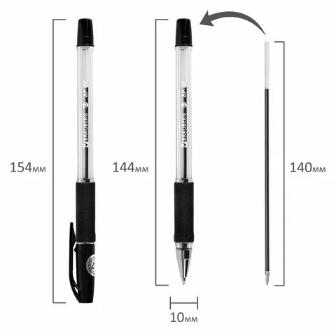 Шариковая ручка Brauberg BP-GT черная, 0.35мм, прозрачный корпус