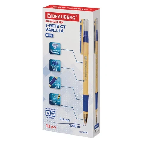 Ручка шариковая Brauberg i-Rite GT Vanilla синяя, 0.5мм, кремовый корпус