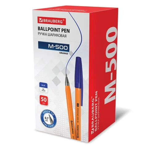 Ручка шариковая Brauberg M-500 Orange синяя, 0.7мм