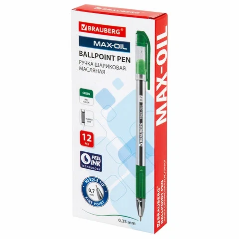 Ручка шариковая Brauberg Max-Oil зеленая, 0.35мм, прозрачный корпус
