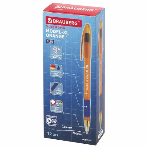 Ручка шариковая Brauberg Model-XL orange синяя, 0.35мм, оранжевый корпус