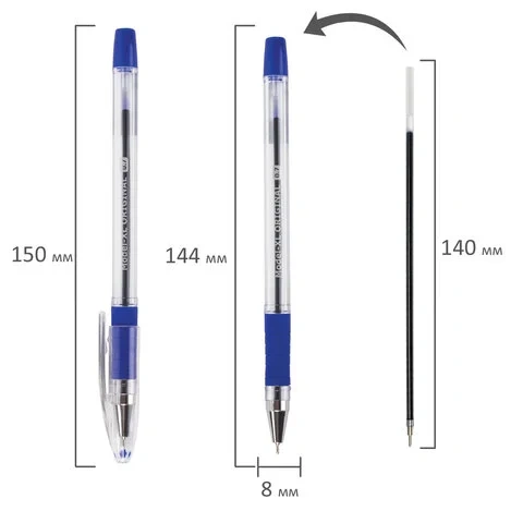 Модель изготовлена из высококачественных материалов, сменный стержень длиной 140 мм снабжен швейцарским игольчатым наконечником фирмы PREMEC и заправлен немецкими чернилами на масляной основе DOKUMENTAL синего цвета. Удобная прорезиненная зона захвата. Специальная технология 'FEEL INK' гарантирует лёгкое и четкое письмо без каких-либо усилий. Диаметр пишущего узла 0,7 мм создает тонкую линию письма, равную 0,35 мм. Благодаря грипу удобство использования ручки возрастает в десятки раз. Прозрачный цвет корпуса с синими деталями соответствует классическому офисному стилю.
