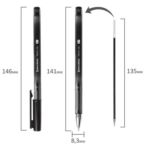 Ручка шариковая Brauberg Profi-Oil черная, 0.7мм, корпус с принтом