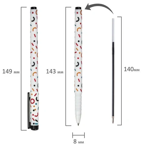 Ручка шариковая Brauberg Soft Touch Grip синяя, 0.35мм, корпус с рисунком Confetti