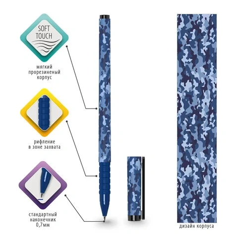Шариковая ручка Brauberg Soft Touch Grip синяя, 0.35мм, Military