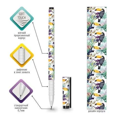 Шариковая ручка Brauberg Soft Touch Grip синяя, 0.35мм, Toucan