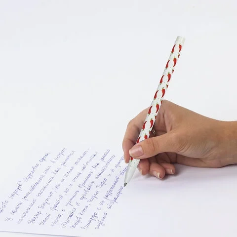 Шариковая ручка с SOFT TOUCH покрытием и оригинальным дизайном рисунка на корпусе. Стандартный пишущий узел, диаметр которого 0,7 мм, создает линию письма, равную 0,35 мм. Ручка имеет сменный стержень длиной 140 мм. Качественные чернила в сочетании со стандартным наконечником обеспечивают мягкое и комфортное письмо. Цвет чернил - синий.
