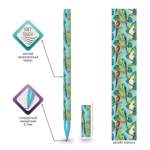 Шариковая ручка Brauberg Soft Touch Stick синяя, 0.35мм, Parrots
