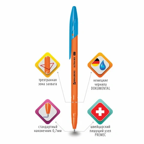 Шариковая ручка Brauberg Ultra Mix синяя, 0.35мм, корпус ассорти