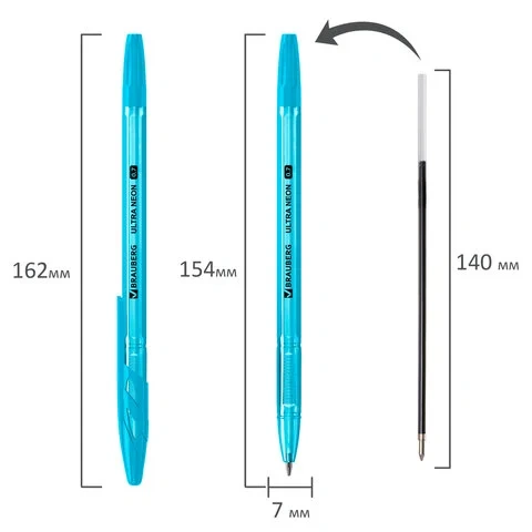 Шариковая ручка Brauberg Ultra Neon синяя, 0.35мм, корпус ассорти