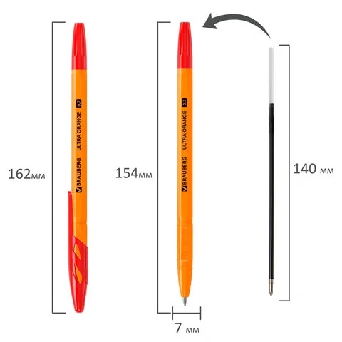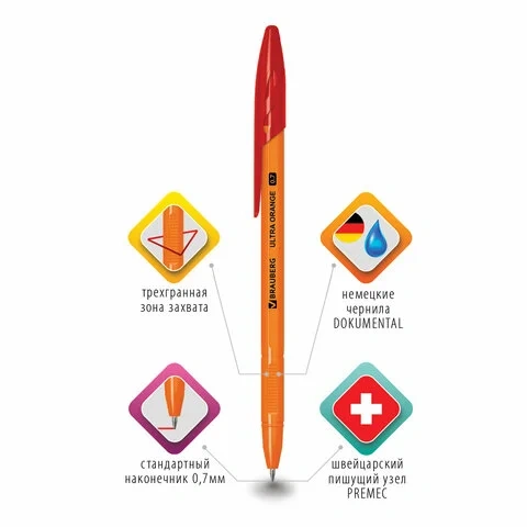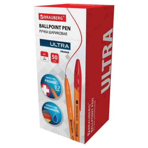 Шариковая ручка Brauberg Ultra Orange красная, 0.35мм, оранжевый корпус