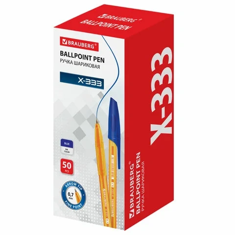 Шариковая ручка Brauberg X-333 синяя, 0.35мм, оранжевый корпус