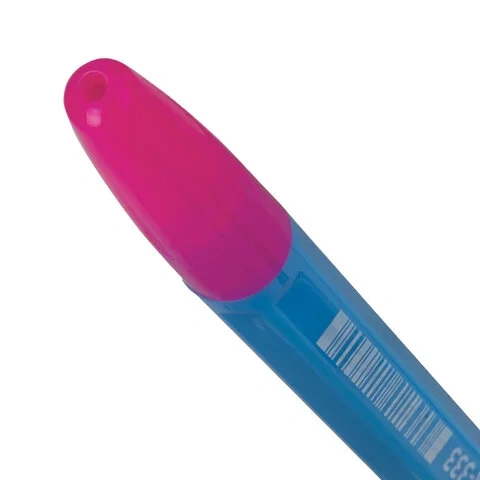 Шариковая ручка с корпусом ярких цветов ассорти, вентилируемым колпачком и удобной трёхгранной зоной захвата с рифлением, препятствующим скольжению пальцев при письме. Длина стержня составляет 142 мм. Диаметр пишущего узла, равный 0,7 мм, создает среднюю по толщине линию письма, равную 0,35 мм. Синие чернила. Сменный стержень. Поставляется в нескольких вариантах цвета корпуса (без возможности выбора).