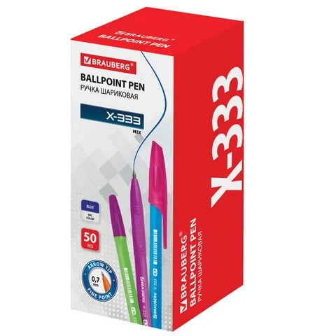 Шариковая ручка Brauberg X-333 Mix синяя, 0.35мм, корпус ассорти