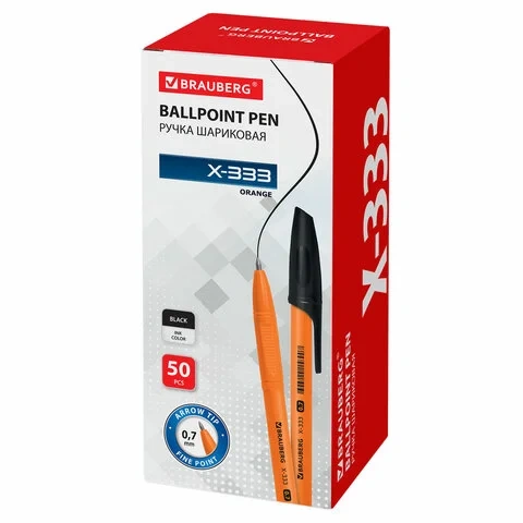 Шариковая ручка Brauberg X-333 Orange черная, 0.35мм, оранжевый корпус
