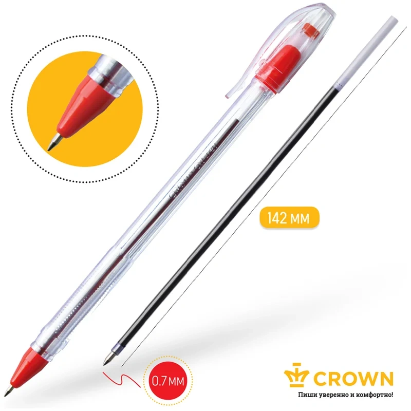 Ручка шариковая Crown Oil Jell красная, 0.7мм, прозрачный корпус