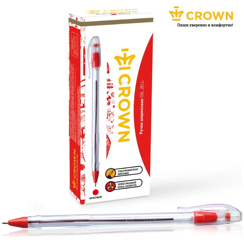 Шариковая красная ручка Crown Oil Jell – это функциональный инструмент для ежедневного использования. Диаметр пишущего узла 0,7 мм, благодаря чему ручка подойдет для любого стиля письма. Цвет чернил - красный. Она подойдет для заполнения бланков, ведения дневника или скетчинга. Рифленая зона захвата снижает давление на пальцы рук при письме. Чернила на масляной основе пониженной вязкости обеспечивают мягкое ровное письмо и уверенное скольжение по бумаге. Легкий прозрачный корпус достаточно лаконичен по форме и весьма удобен при письме. В упаковке 12 штук.