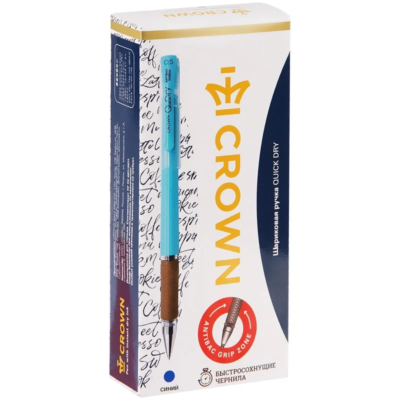 Ручка шариковая Crown Quick Dry синяя, 0.5мм, корпус ассорти