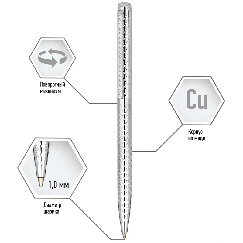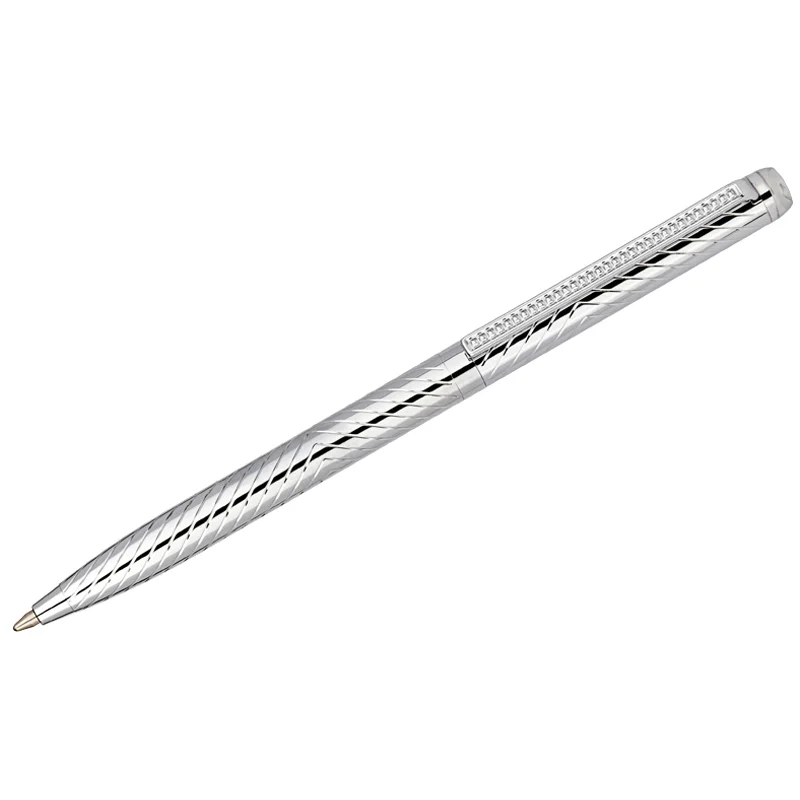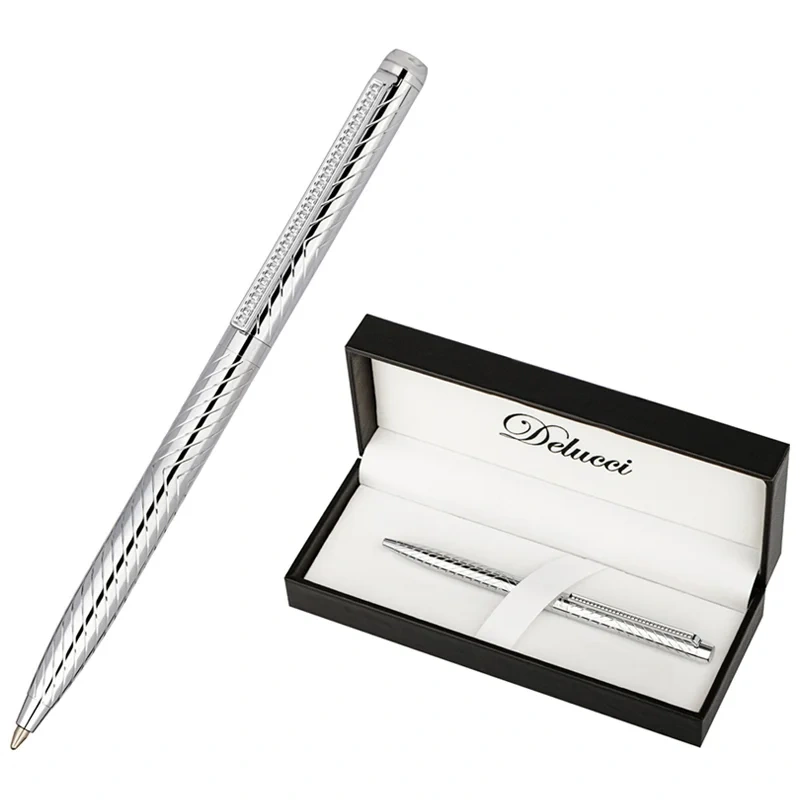 Ручка шариковая Delucci 'Argento', синяя, 1,0мм, корпус серебро, поворотн., подар.уп.
