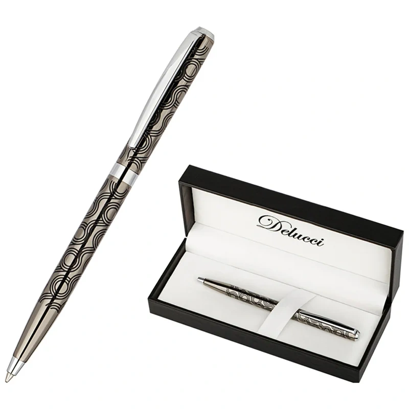 Ручка шариковая Delucci 'Motivo', синяя, 1,0мм, корпус оружейный металл/серебро, поворот, подар.уп.