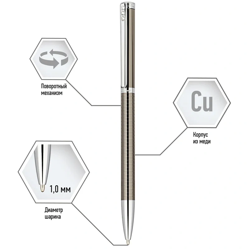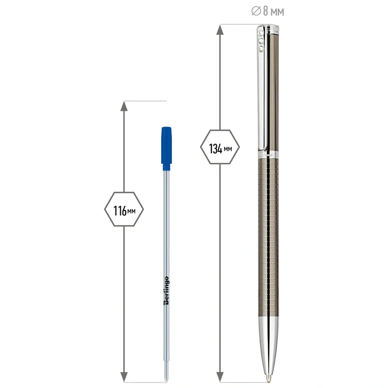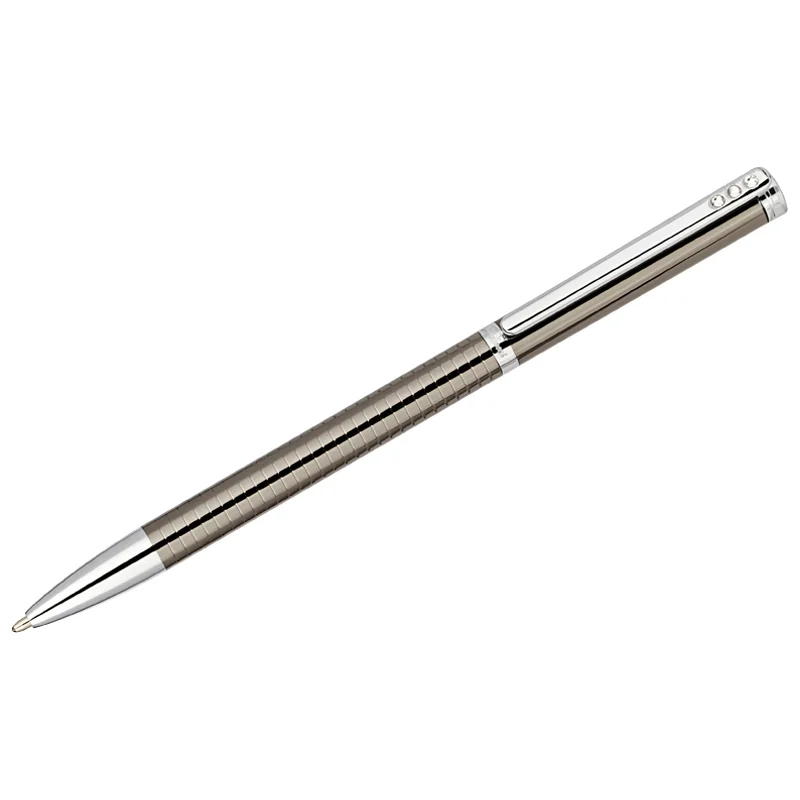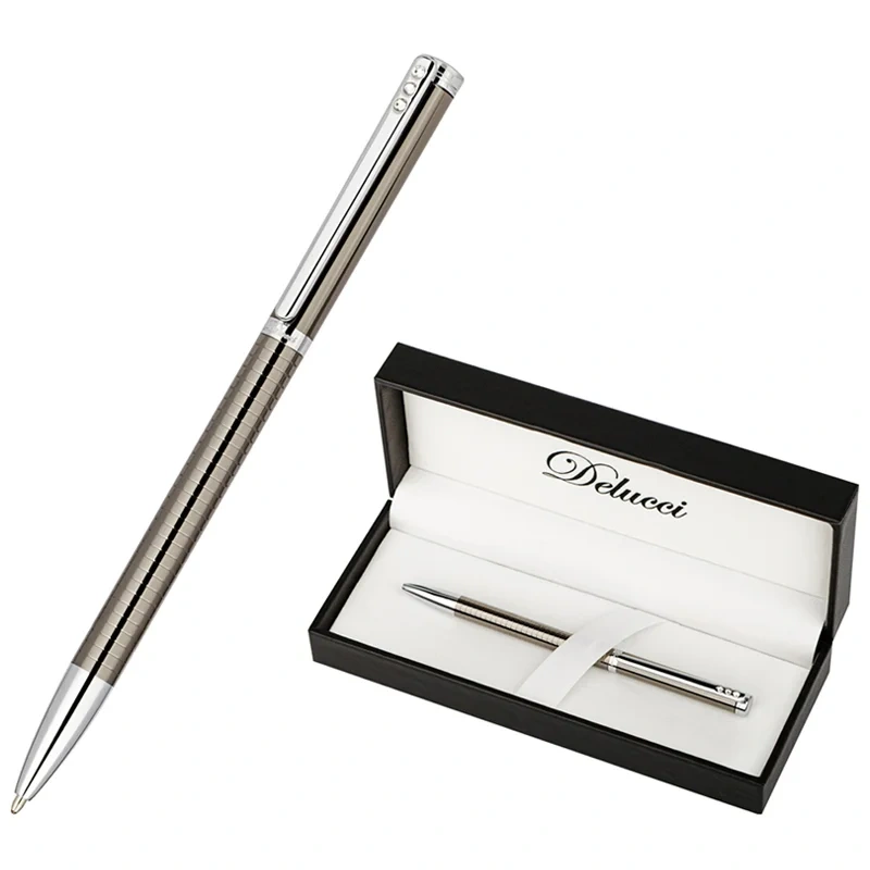 Ручка шариковая Delucci 'Stella', синяя, 1,0мм, корпус оружейный металл/серебро, кристал, подар.уп.