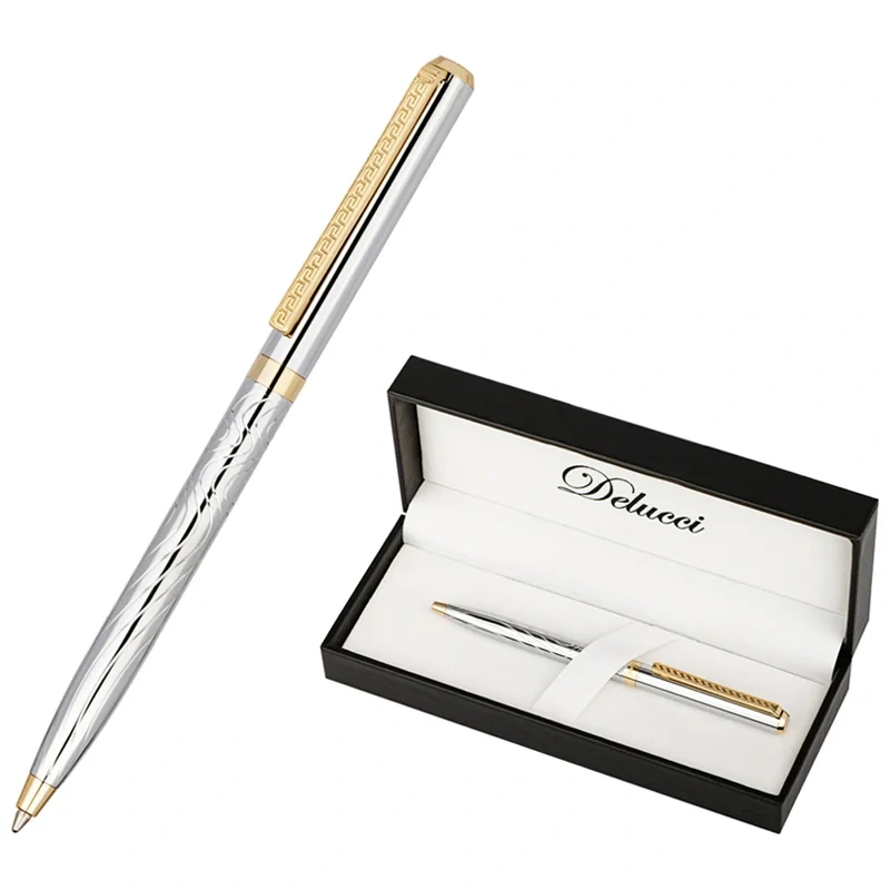 Ручка шариковая Delucci 'Tempo', синяя, 1,0мм, корпус серебро/золото, поворот., подар.уп.