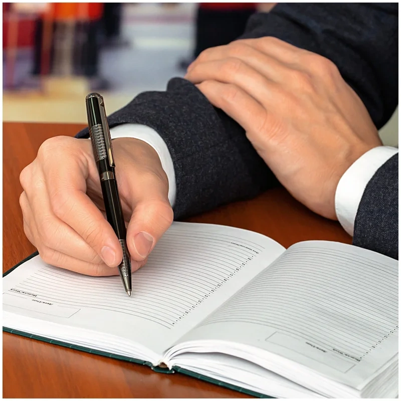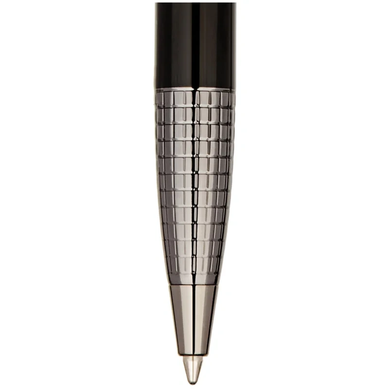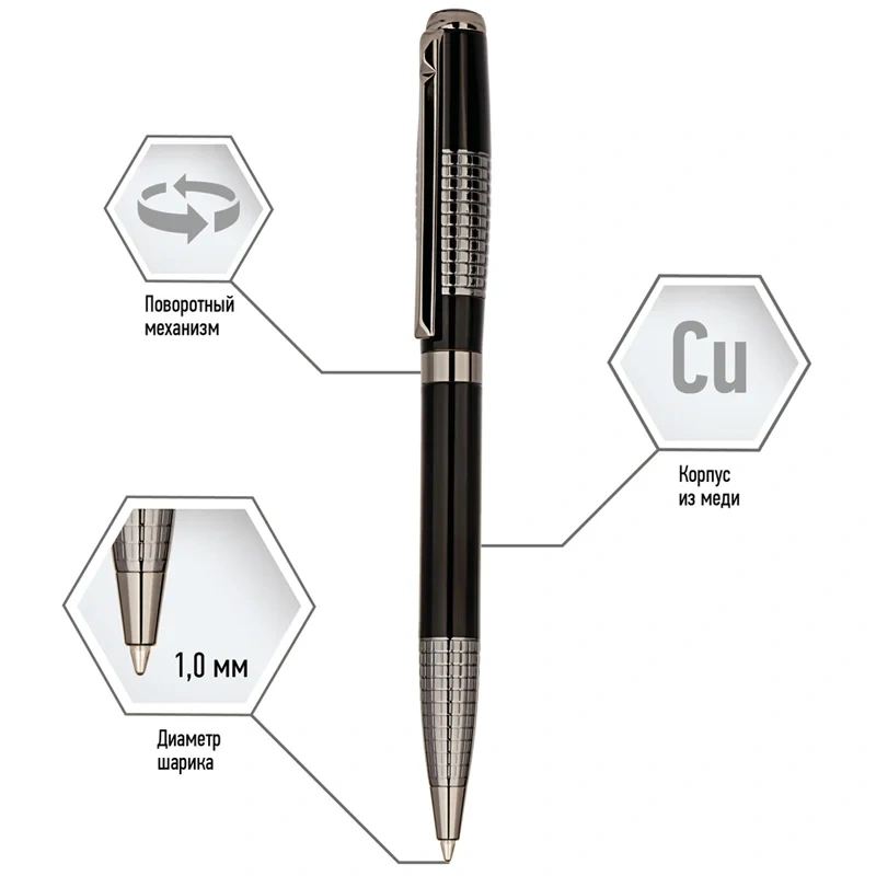 Delucci Vivo – это необычная подарочная шариковая ручка с синими чернилами, которая подойдёт в качестве подарка коллеге или другу. Оригинальное опоясывающая гравировка неизменно привлекает внимание к класическому сочетанию серебрянного и черного цвета корпуса. Клип сделан из нержавеющей стали, он позволяет фиксировать ручку на ежедневниках, блокнотах и карманах одежды. Delucci Vivo оснащена поворотным механизмом, внутри которого расположен пишущий стержень диаметром 1 мм, который идеально подходит для быстрого стиля письма. Упакована в кожаный футляр.