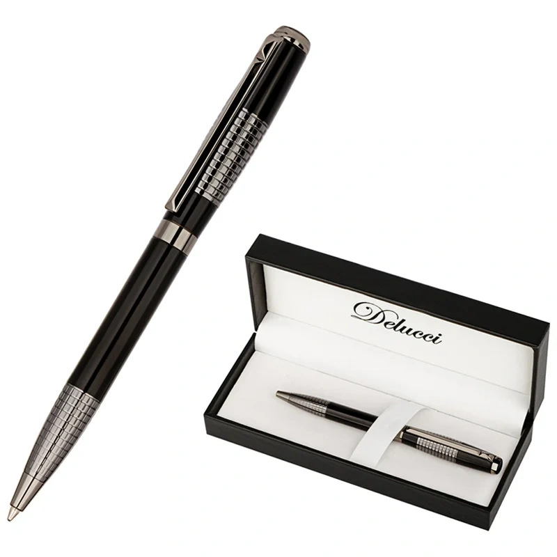 Ручка шариковая Delucci 'Vivo', синяя, 1мм, цвет корпуса - черный/серебро, поворот., подар.уп.