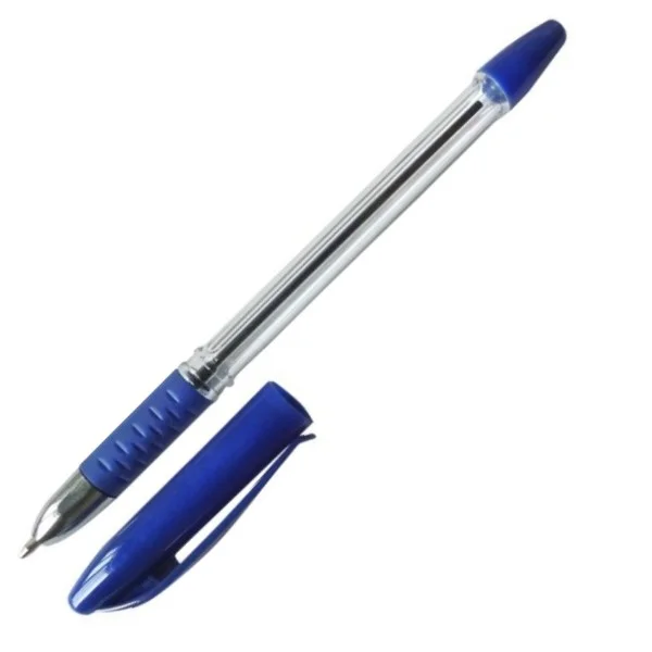 Ручка шариковая DOLCE COSTO в пластиковом прозрачном корпусе, с металлическим наконечником, c резиновым держателем, с колпачком. Толщина пишущего узла 0,7 мм. Цвет синий.