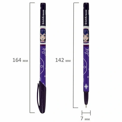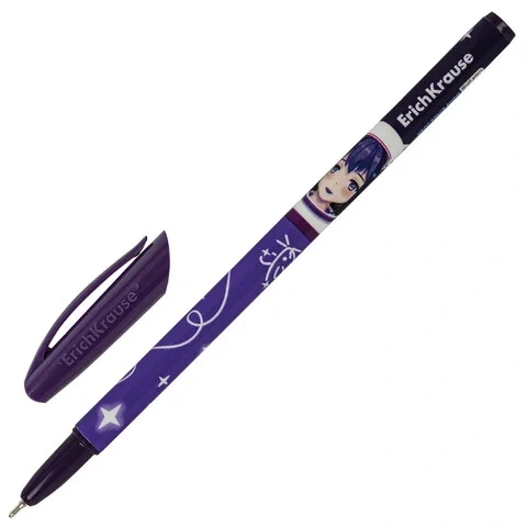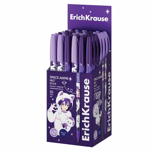 Шариковая ручка Erich Krause Neo Space Anime синяя, 0.26мм, корпус ассорти, одноразовая