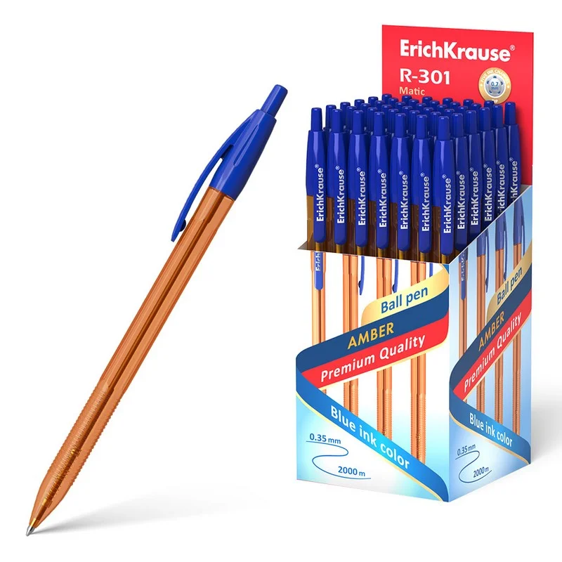 Ручка шариковая ErichKrause R-301 Amber Matic 0.7, автомат, синяя